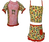Max Out makes terrific swim wear. Durable adorable and great sun protection--my kids have NEVER had a sun burn and we live in California. I have loved all the MaxOut products I've bought in the past but was not so sure about this pattern. I should not have worried it is really cute on and my daughter loves it. This suit does not cover as much as the sun suits but my daughter is able to use the potty by herself which is key. We have the matching hat which actually covers most of the rest of her anyway. She usually wears the swim shirt since that covers her shoulders and I would have just bought that but it was only offered with the tankini top too. Great suit.More detail ...